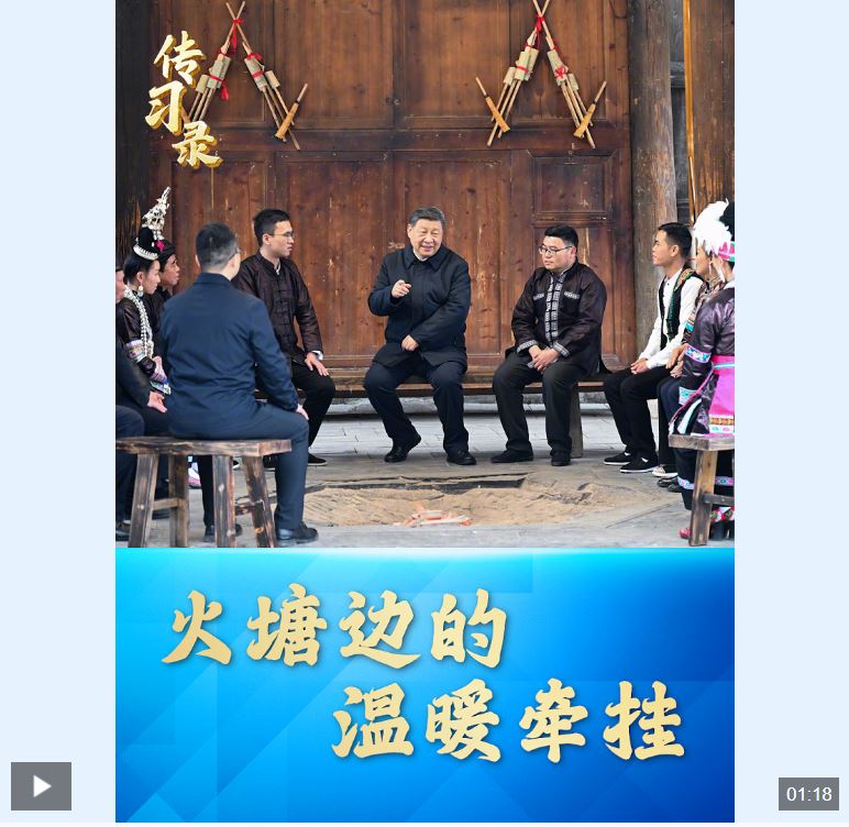 3月17日,习近平总书记来到贵州省黔东南州黎平县肇兴侗寨考察调研。信团鼓楼内,一方火塘边,总书记同村干部和村民代表围坐一起,共话乡村全面振兴。