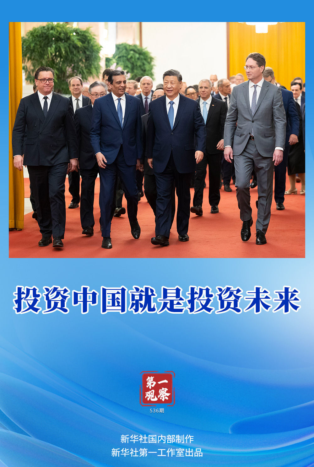 习近平主席指出:“中国过去是、现在是、将来也必然是外商理想、安全、有为的投资目的地,与中国同行就是与机遇同行,相信中国就是相信明天,投资中国就是投资未来。”