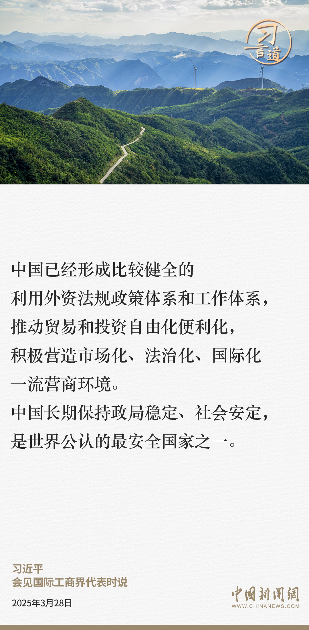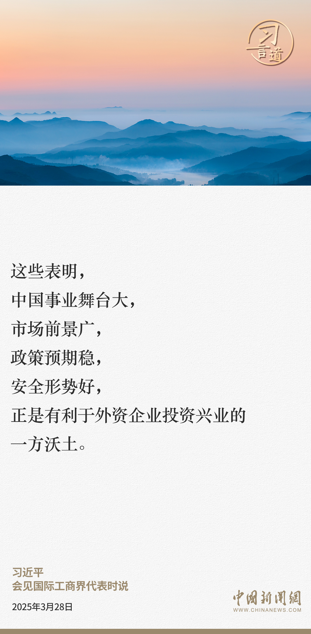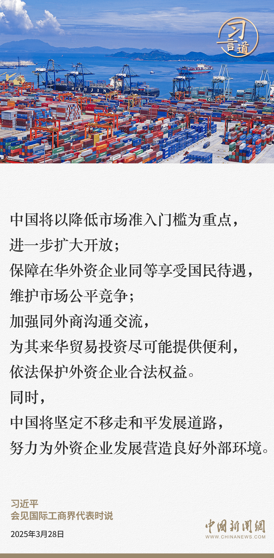 3月28日,国家主席习近平在北京人民大会堂会见国际工商界代表。习近平主席指出——