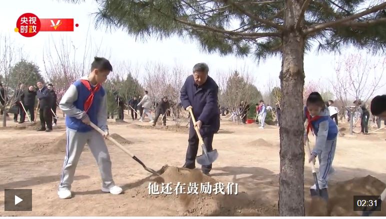 4月3日,习近平等党和国家领导人来到北京市丰台区永定河畔,同干部群众一起参加义务植树。