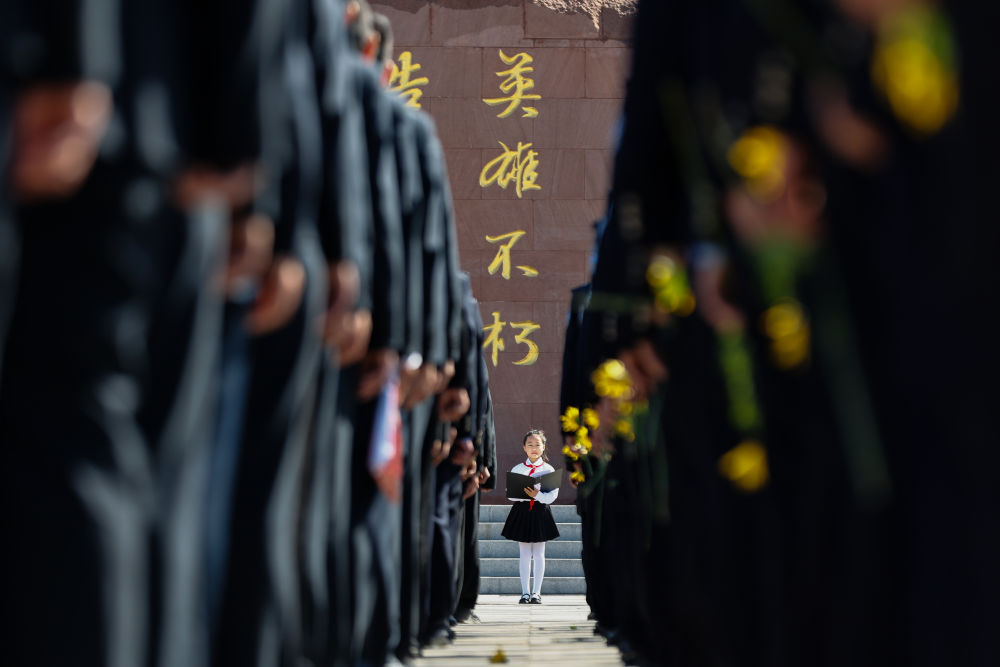 2025年4月2日,清明将至,人们在天津市滨海新区塘沽烈士陵园缅怀先烈。