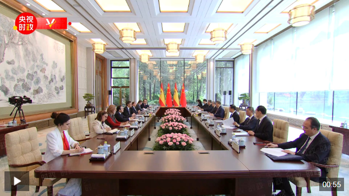 4月11日上午,国家主席习近平在北京钓鱼台国宾馆会见来华访问的西班牙首相桑切斯。