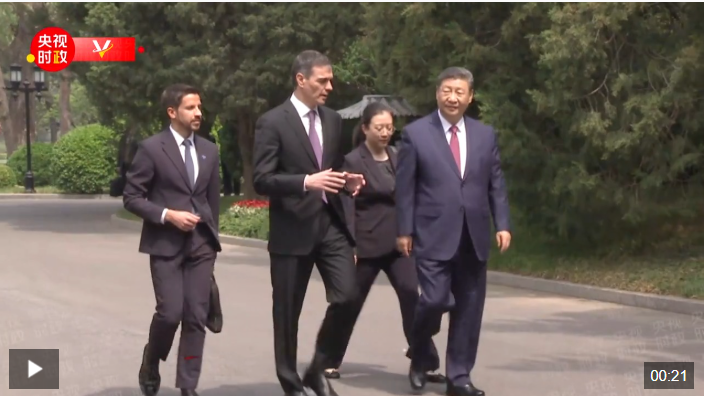 四月的北京,春意盎然,生机勃勃。会见后,习近平主席同西班牙首相桑切斯一起散步。