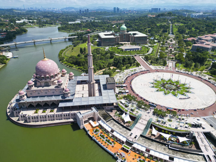 这是2025年3月18日拍摄的马来西亚行政首都布特拉贾亚景色(无人机照片)。新华社记者 程一恒 摄