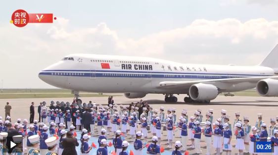 当地时间6月16日中午,国家主席习近平乘专机抵达阿斯塔纳,应哈萨克斯坦共和国总统托卡耶夫邀请,出席第二届中国—中亚峰会。