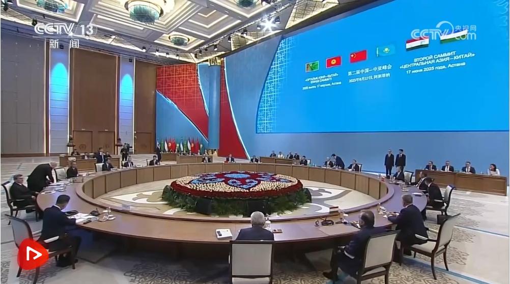 当地时间6月17日下午,第二届中国—中亚峰会在阿斯塔纳独立宫举行。哈萨克斯坦总统托卡耶夫主持会议。中国国家主席习近平、吉尔吉斯斯坦总统扎帕罗夫、塔吉克斯坦总统拉赫蒙、土库曼斯坦总统别尔德穆哈梅多夫、乌兹别克斯坦总统米尔济约耶夫出席。元首们在友好气氛中共同回顾西安峰会以来中国—中亚各领域合作成果,展望未来发展方向,一致决定弘扬“中国—中亚精神”,坚持永久睦邻友好,携手推动中国—中亚命运共同体建设不断取得新成就。