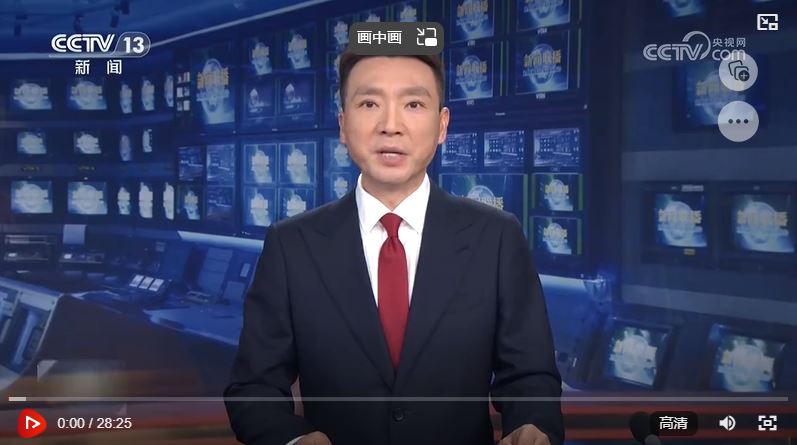 电子屏幕上出现钟摆的画面。随着钟摆,1945、1955、1965……2025的年份数字依次显现。9时整,报时钟声响起,纪念大会开始。