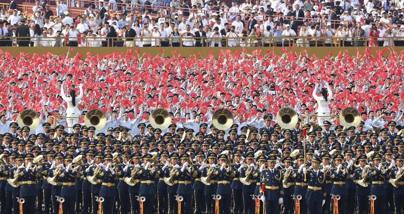 △2025年9月3日,纪念中国人民抗日战争暨世界反法西斯战争胜利80周年大会在北京隆重举行。这是中国人民解放军联合军乐团和合唱团。