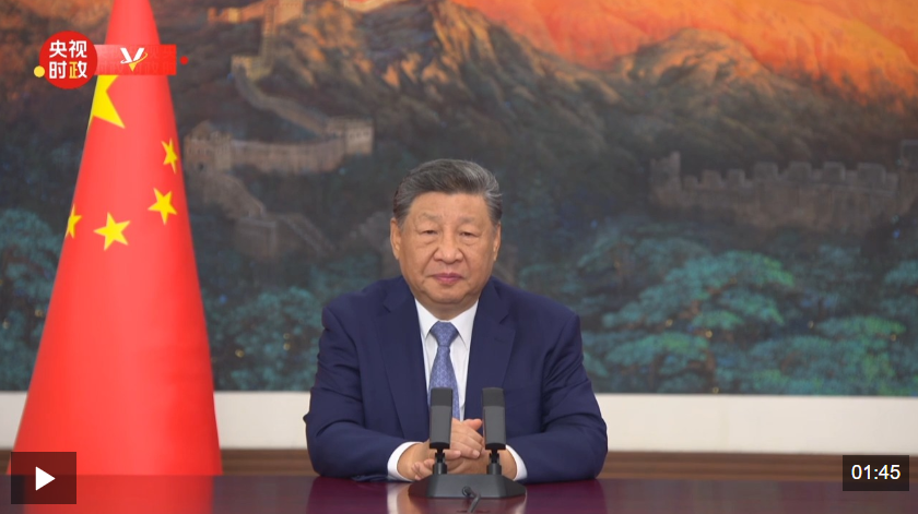 9月24日,国家主席习近平在联合国气候变化峰会发表视频致辞。