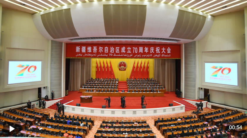 25日上午,习近平总书记在乌鲁木齐市出席新疆维吾尔自治区成立70周年庆祝大会,同新疆各族各界干部群众代表一道,热烈庆祝新疆维吾尔自治区成立70周年。