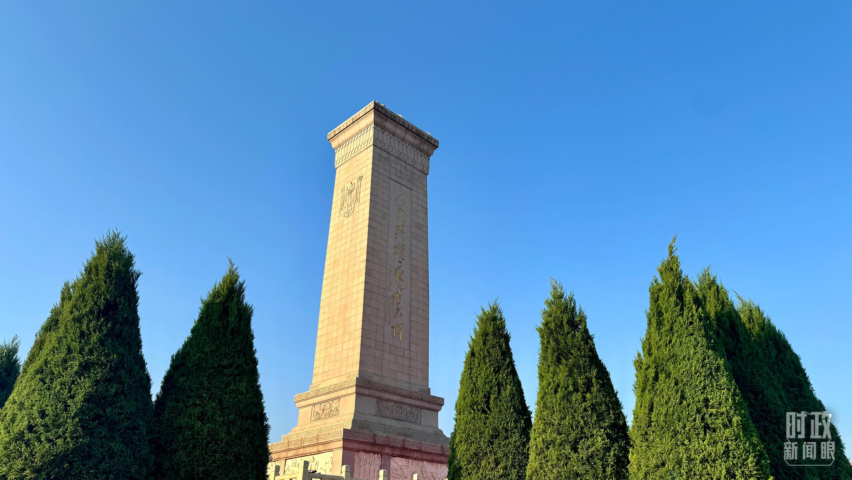 18名礼兵稳稳抬起花篮,缓步走向人民英雄纪念碑,将花篮摆放在纪念碑基座上。