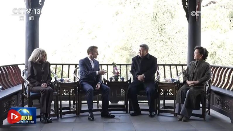 习近平夫妇邀请马克龙夫妇共进午餐,继续深入交流。