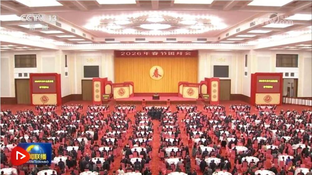 中共中央、国务院14日上午在人民大会堂举行2026年春节团拜会。中共中央总书记、国家主席、中央军委主席习近平发表讲话,代表党中央和国务院,向全国各族人民,向香港特别行政区同胞、澳门特别行政区同胞、台湾同胞和海外侨胞拜年。