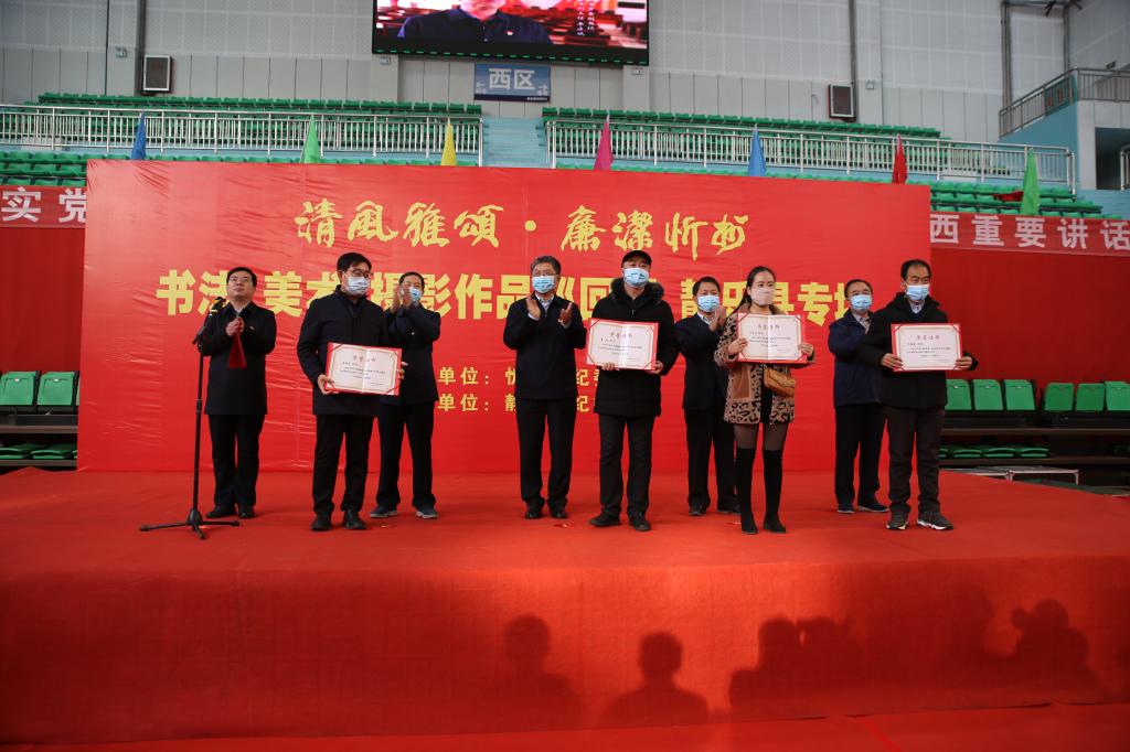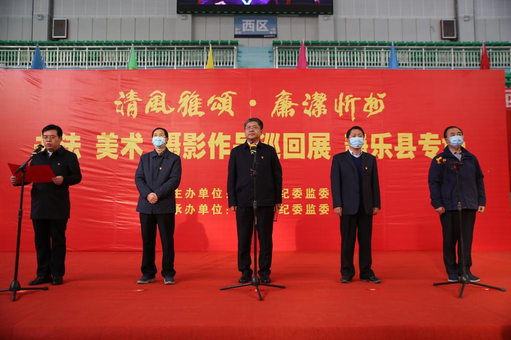 2020年12月2日,“清风雅颂·廉洁忻州”书法美术摄影作品展静乐站巡展开展仪式在静乐县体育中心举行,县四大班子领导出席开展仪式,县委常委、县纪委书记、监委主任方笔计主持。