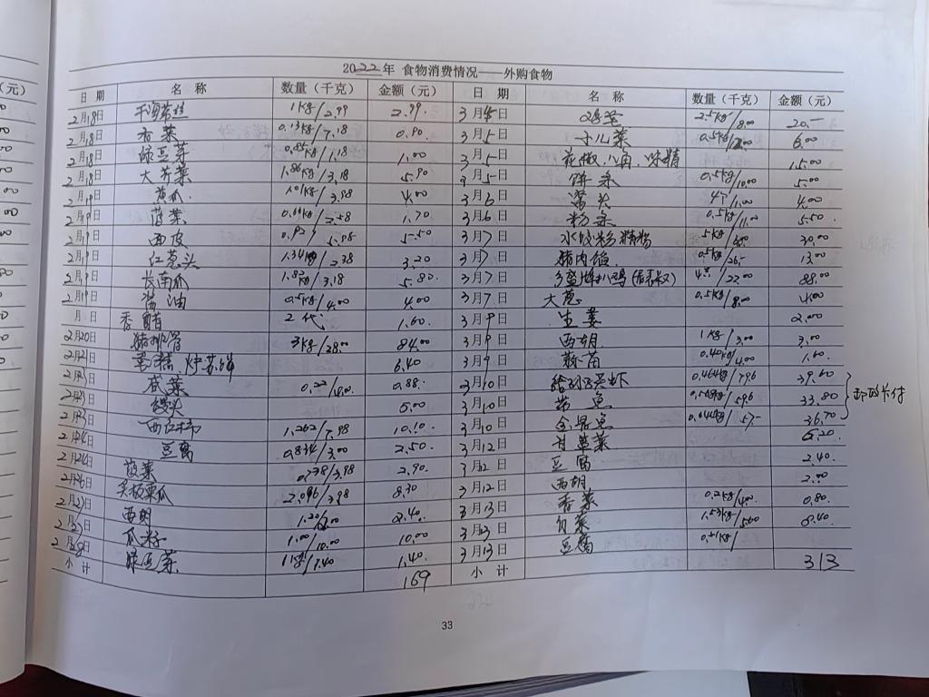 “饺子粉一袋10千克,80元”“原味葵瓜子5千克,110元”“咸鲅鱼1.06千克,84.3元”……春节前夕,记者在山东省德州市陵城区于集乡大于集村见到村民于振瑞时,他正将自己当天购买的年货,一笔一笔认真登记在全国农村固定观察点跟踪调查户记账手册上。