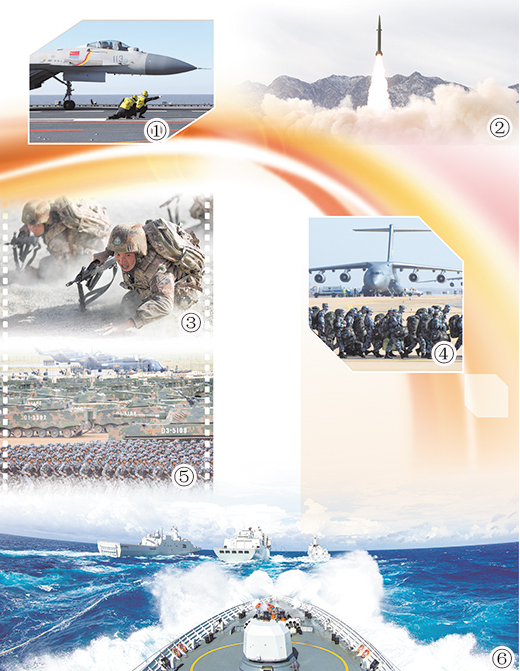 图⑤:2017年7月30日,庆祝中国人民解放军建军90周年阅兵在位于内蒙古的朱日和训练基地举行。