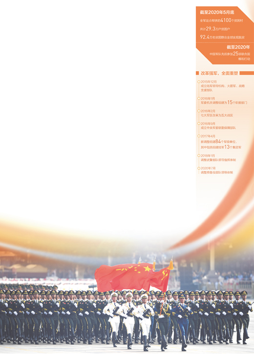 “是解放军,让我的人生从荒漠变成了绿洲。”曾就读于帕米尔高原上的迈丹小学、2018年考入吉林大学的古丽再娜·帕哈尔说。1962年解放军的一支连队刚来到迈丹村时,村里孩子上学非常困难。盖教室、捐文具、当老师……数十年来,连队官兵帮助村民的脚步从未停歇。截至2020年5月底,全军定点帮扶的4100个贫困村,共计29.3万户贫困户、92.4万名贫困群众全部实现脱贫。