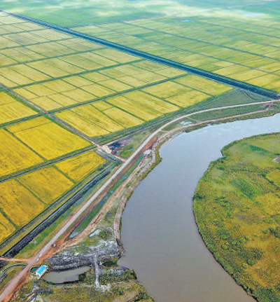 位于莫桑比克加扎省首府赛赛市的万宝莫桑农业园是中国在非洲最大规模水稻种植项目,极大缓解了该国的粮食短缺问题。图为万宝莫桑农业园内的水稻田俯瞰图。新华社记者 张 宇摄