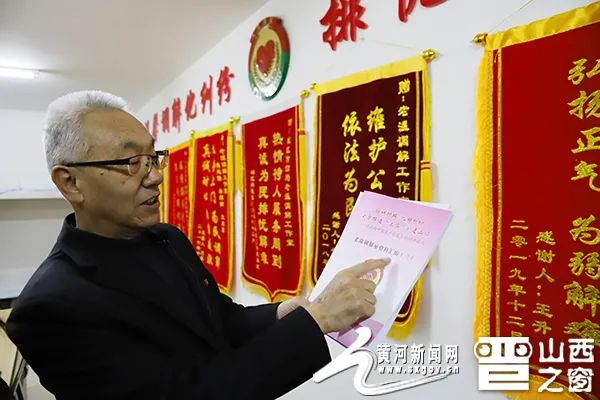 走进大同市平城区信访局的一间普通的办公室,墙上挂满了锦旗,如果不是都写着同一个名字,记者会把这屋子当成是制作锦旗的作坊。在这间办公室里,记者见到了温廷儒。他中等个头,面容清瘦,满头白发却精神奕奕地坐在接待桌前,戴起老花镜,一丝不苟地整理近期接访资料。