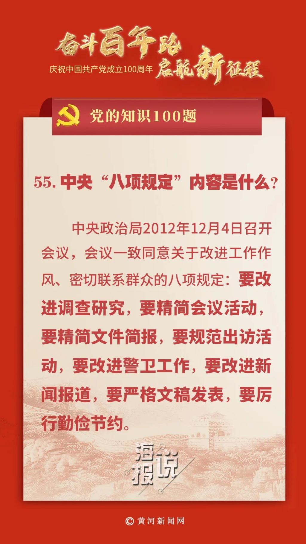 党的知识100题:中央“八项规定”内容是什么?