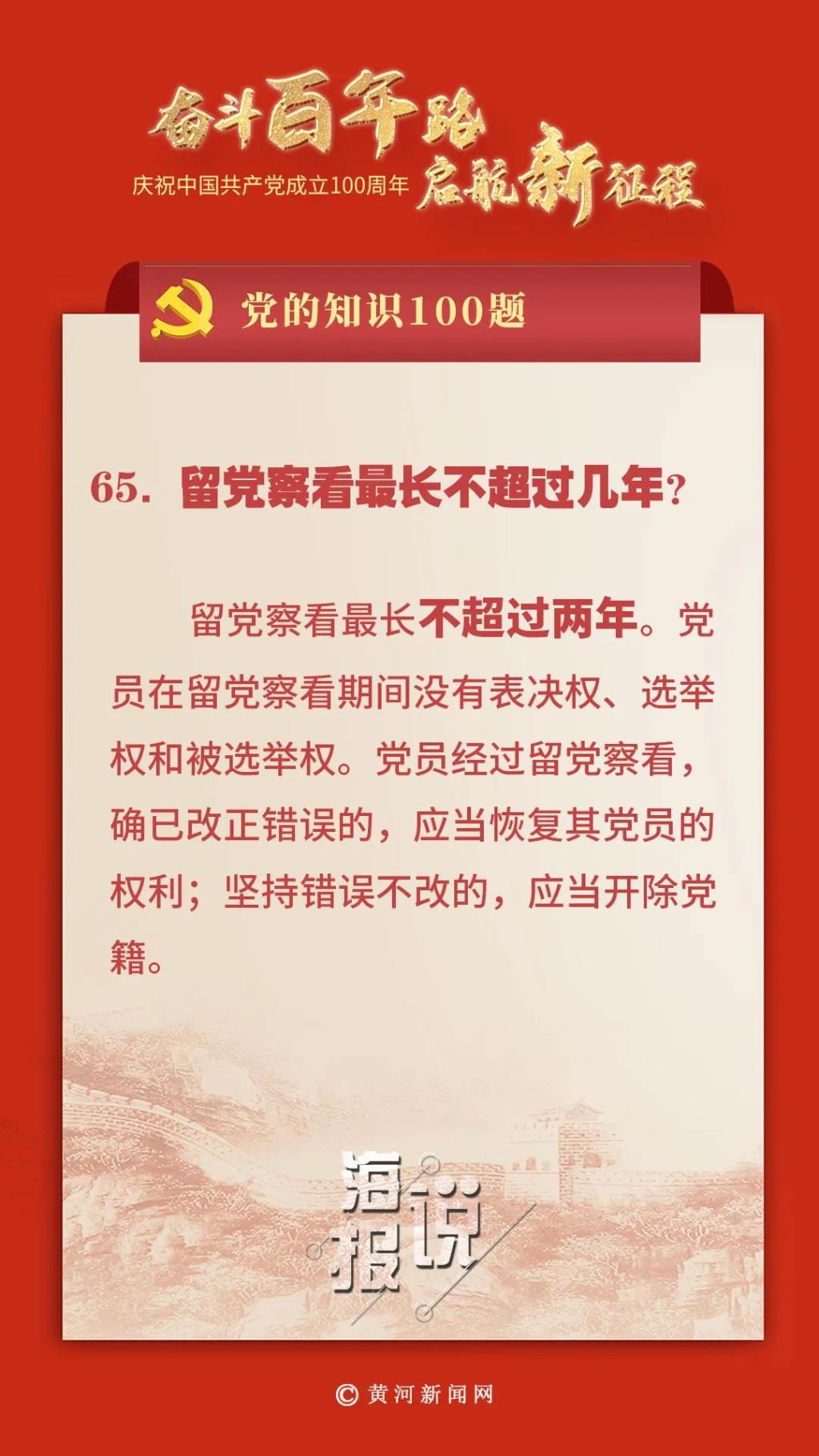 党的知识100题:留党察看最长不超过几年?