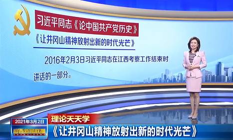 《让井冈山精神放射出新的时代光芒》是2016年2月3日习近平同志在江西考察工作结束时讲话的一部分。指出:井冈山是中国革命的摇篮。井冈山时期留给我们最为宝贵的财富,就是跨越时空的井冈山精神。井冈山精神最重要的方面就是坚定信念、艰苦奋斗,实事求是、敢闯新路,依靠群众、勇于胜利。结合新的时代条件,让井冈山精神放射出新的时代光芒,最重要的是坚定执着追理想、实事求是闯新路、艰苦奋斗攻难关、依靠群众求胜利。