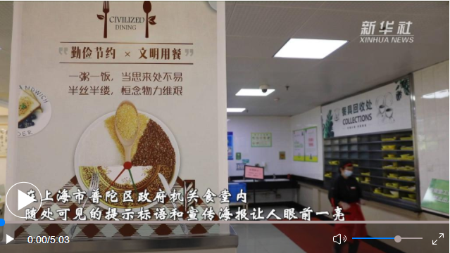 “点菜点少、不够再添”“光盘行动、从我做起”“厉行节约、反对浪费”……在上海市普陀区政府机关食堂内,随处可见的提示标语和宣传海报让人眼前一亮。