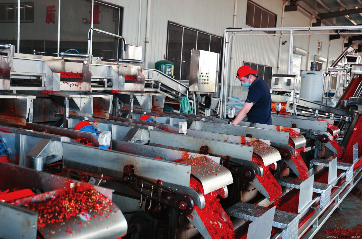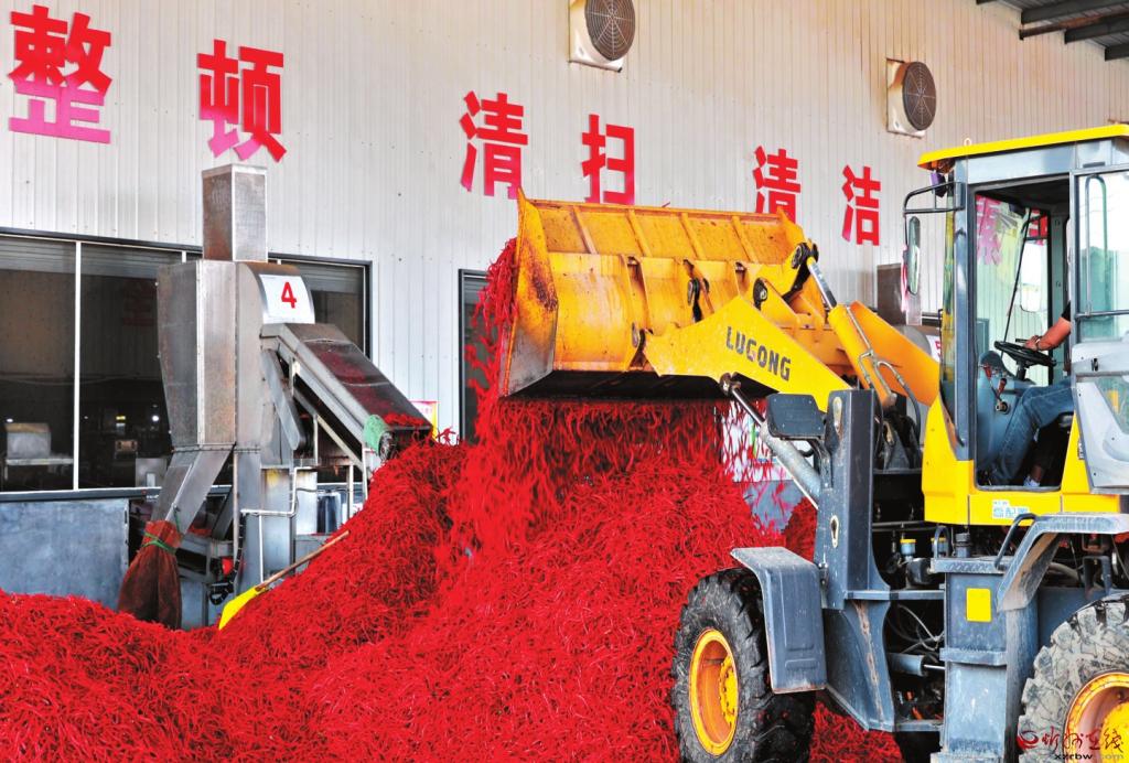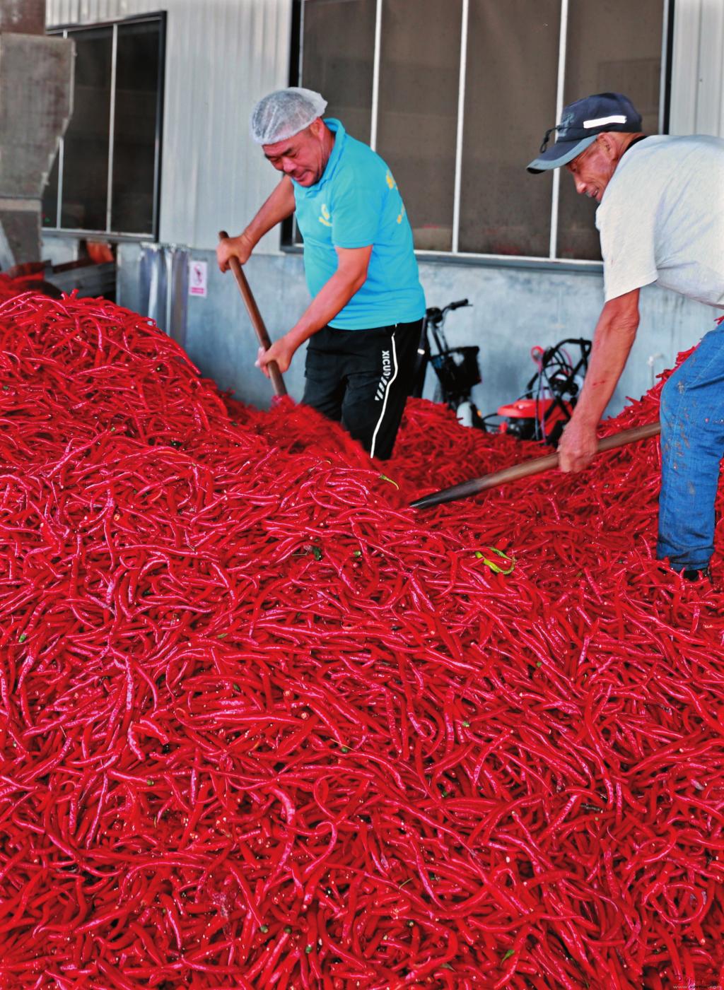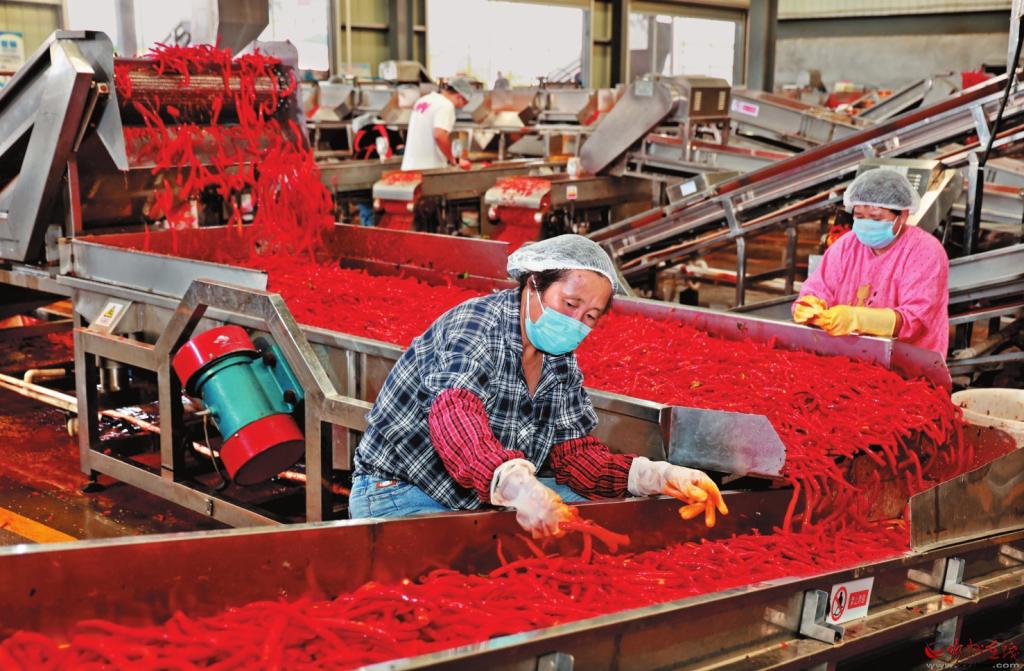 工人们井然有序地加工鲜椒