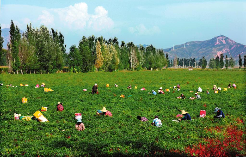 红彤彤的辣椒,映红了农民朴实的笑脸,也照亮了乡村振兴之路。目前,忻府区辣椒种植面积稳定在9万亩左右,80%的辣椒通过了无公害农产品和绿色食品认证。辣椒种植、加工总产值达5.8亿元,占第一产业总产值的三成多,是当地群众增收的农业支柱产业,为乡村振兴提供了源源不断的动力。(本报记者 宫爱文)