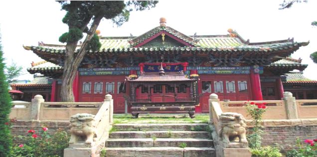 泰山庙位于原平市崞阳镇平定街村。据清《崞县志》记载,创建于元至治三年(1323)。明、清均有修葺。坐北朝南,东西长31.8米,南北宽52.3米,占地面积约1663平方米。中轴线仅存正殿,两侧为东西配殿及耳房。正殿及东西配殿为明代遗构,余为清代遗存。正殿石砌台基,前设月台,上置勾栏、望柱,面宽五间,进深五椽,单檐悬山顶,六檩前廊式构架,斗拱五踩,单翘单昂,装修原制不存。正殿前建有抱厦三间,单檐歇山顶。现新塑像23尊。