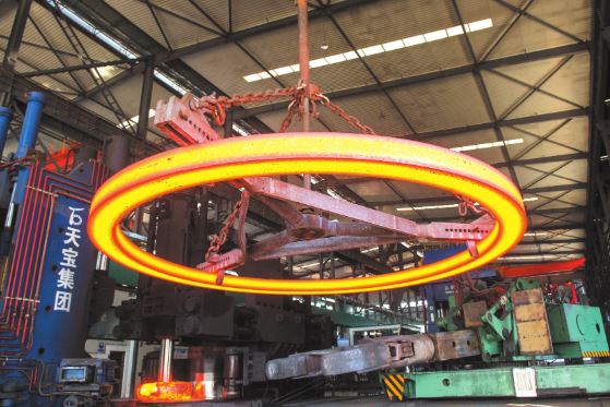 在定襄天宝集团的法兰制造车间,大型法兰新鲜出炉。本报记者范琛摄