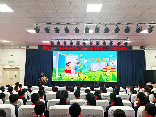 3月9日,新学期的第一天,忻州市七一路小学二楼阶梯教室里气氛热烈,“法治兴则国兴 少年强则国强”的红色横幅格外醒目。市司法局走进该校开展“忻少年·法课堂”青少年法治教育活动,为百余名师生送上一堂生动的法治课。