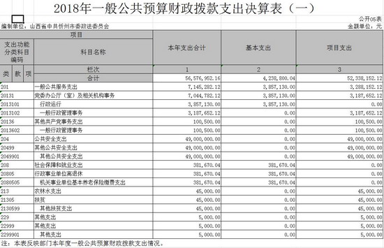 5、基本支出:指为保障机构正常运转、完成日常工作任务而发生的人员支出和公用支出。