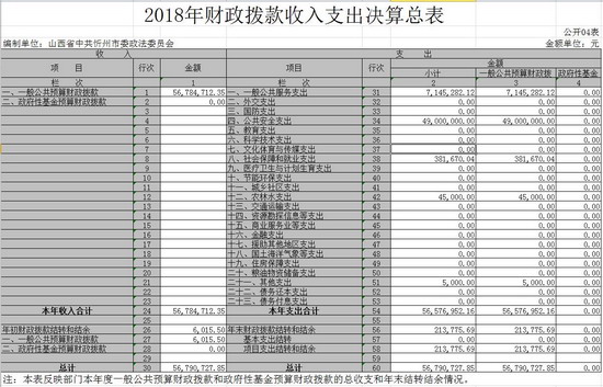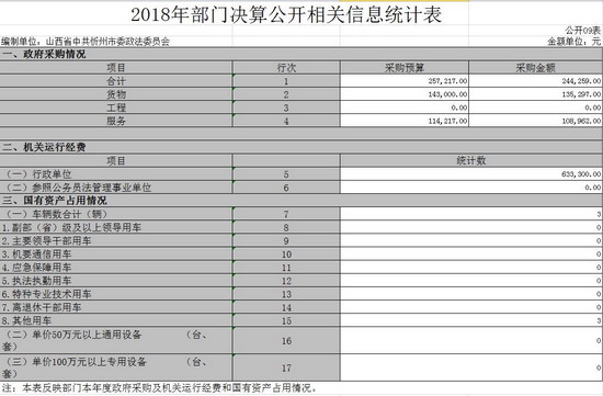 中共忻州市委政法委员会2018年部门决算及“三公”经费公开情况
