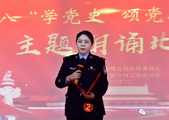 扬巾帼之志,展巾帼风采。为了引领分局女性职工庆祝“三八”国际妇女节111周年和喜迎建党100周年,回顾党的光辉历程,讴歌党的丰功伟绩,继承和发扬党的光荣传统,3月7日,忻州市公安局直属分局开展“学党史、颂党恩、跟党走”主题朗诵比赛,以此纪念国际“三八”妇女节。
